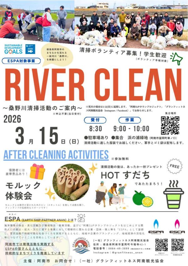 ※荒天の場合は、3/22(日)に延期します。グランフィットネス阿南観光協会インスタグラムやホームページ等でお知らせします。